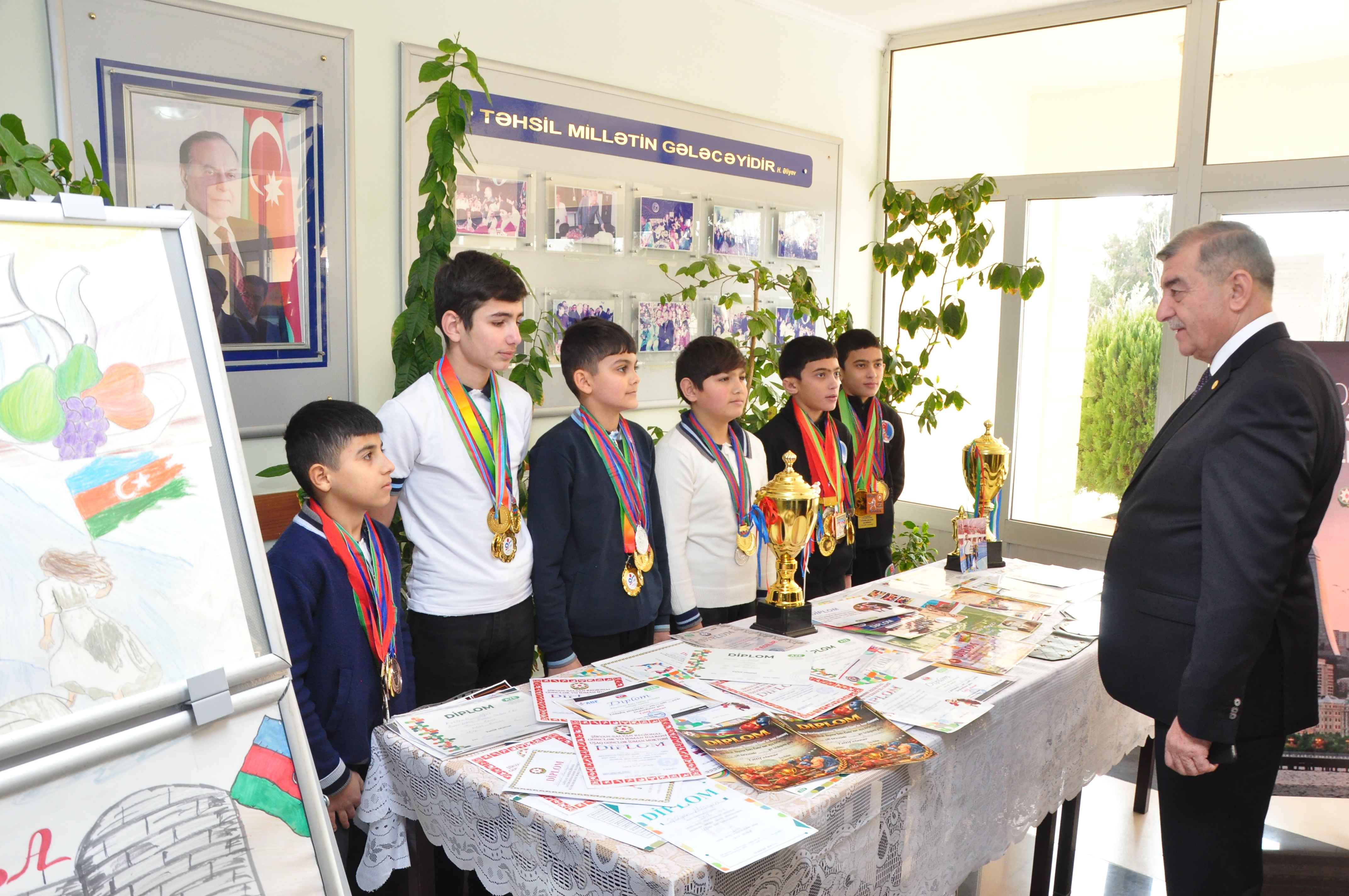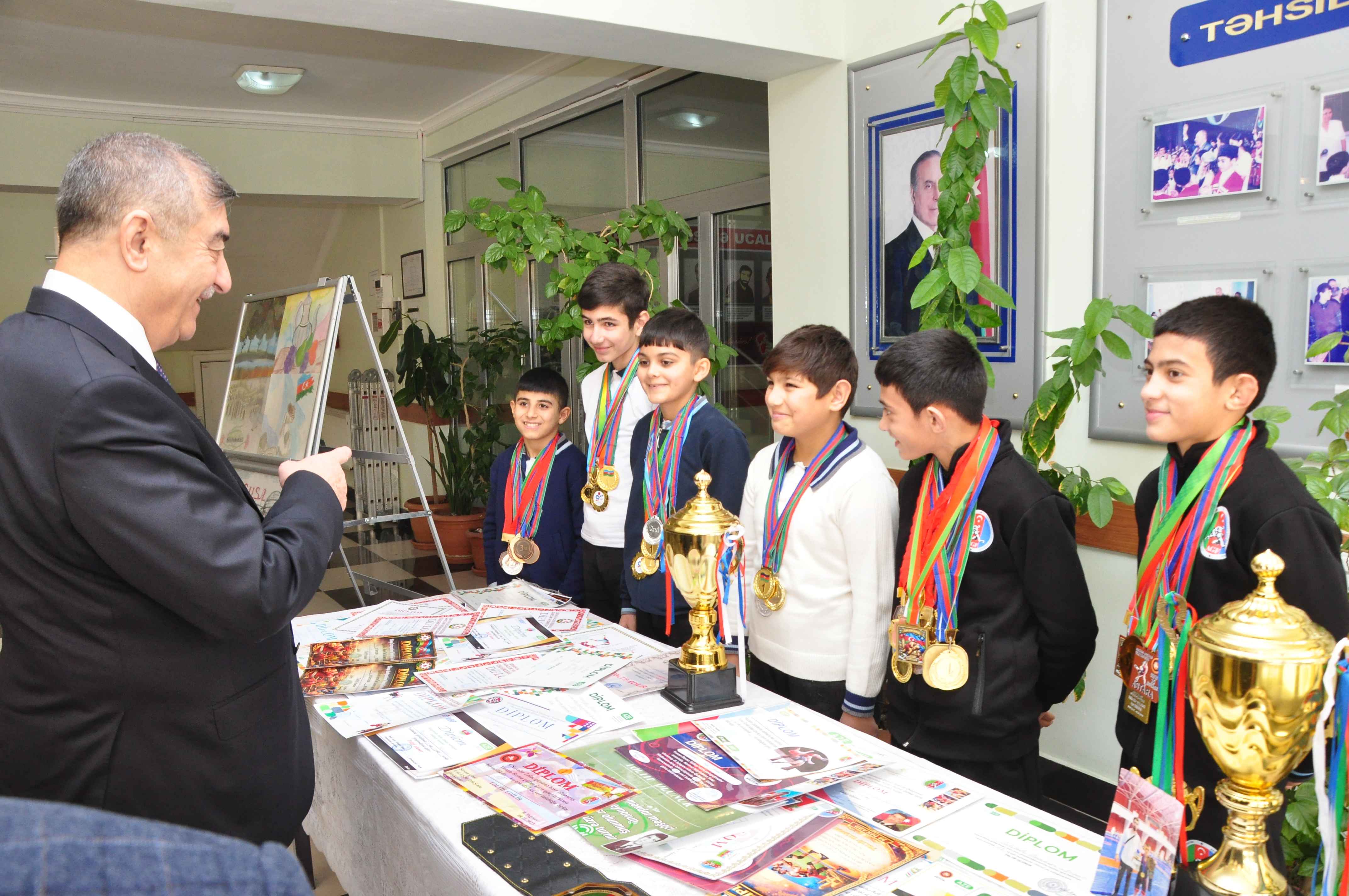 Əvvəlcə məktəblilərin hazırladıqları "Şəhərsalma və Memarlıq İli"nə həsr olunmuş əl işlərindən ibarət sərgiyə baxış keçirilib. Şəhər İcra Hakimiyyətinin başçısı İlqar Abbasov yeniyetmə idmançılarla görüşüb, qazandıqlarını nailiyyətlərə görə onları təbrik edib, xoş arzularını çatdırıb.