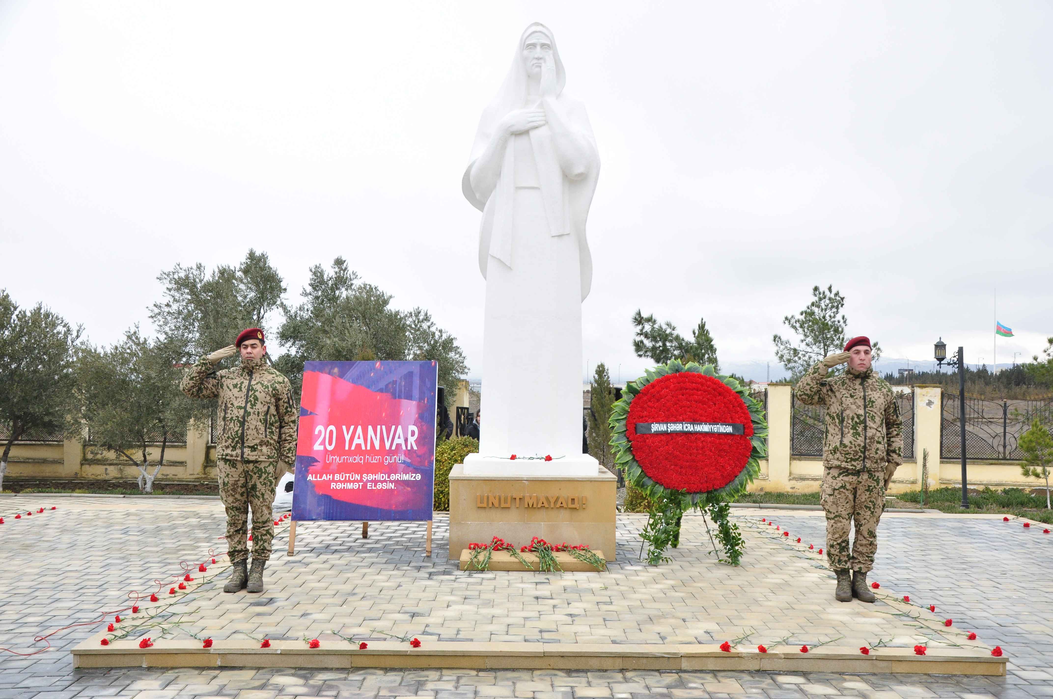 Saat 12:00-da ölkəmizin hər yerində olduğu kimi, Şirvan şəhərində də 20 Yanvar şəhidlərinin xatirəsi bir dəqiqəlik sükutla yad edilib, avtomobillərdən, qatarlardan səs siqnalları verilib.