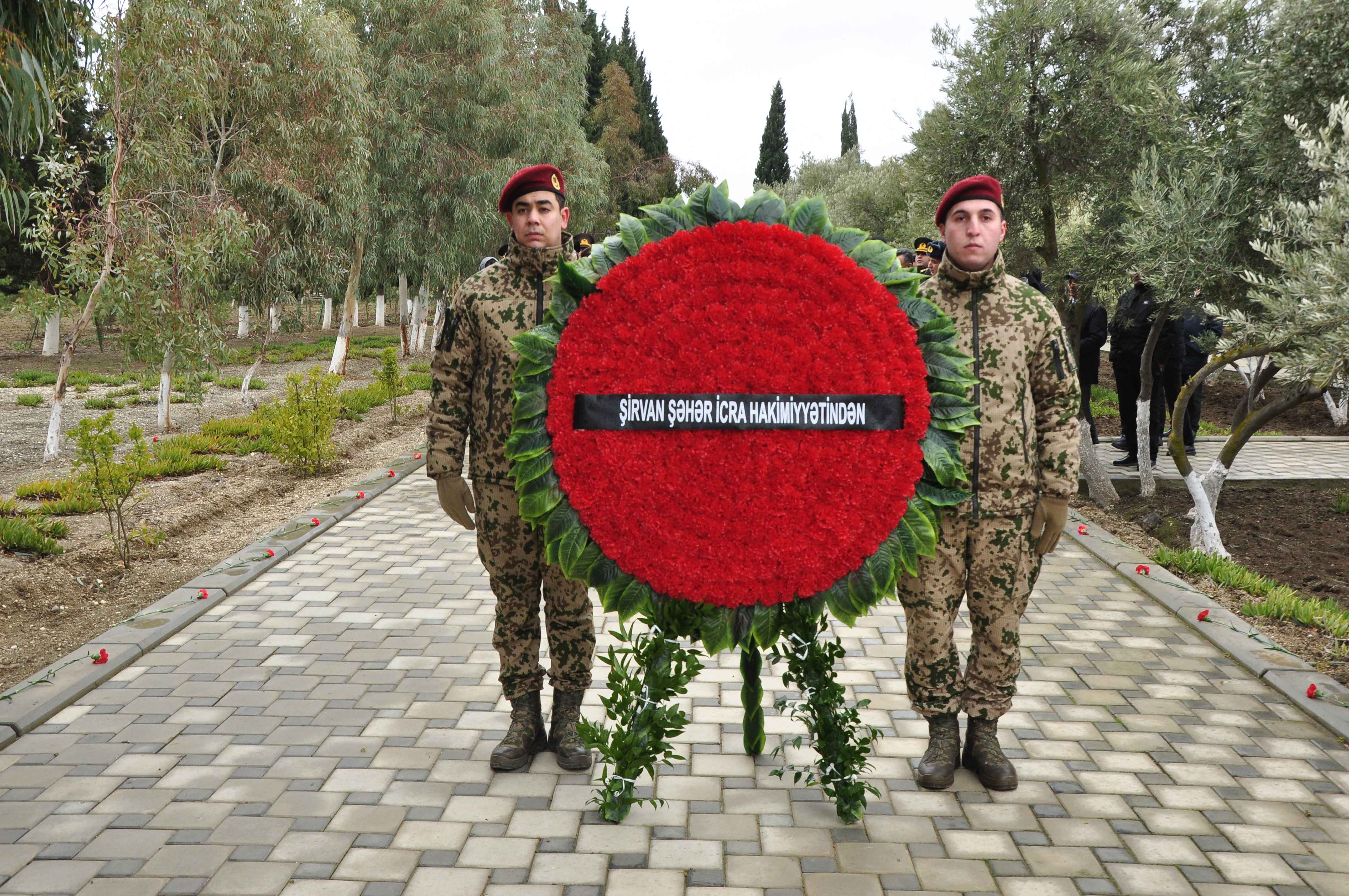 Sonda Şirvan şəhərinin axundu Əvəz Mehrəliyev tərəfindən 20 Yanvar şəhidlərinin, ümumilikdə torpaqlarımızın işğaldan azad edilməsi uğrunda canlarını qurban vermiş bütün şəhidlərimizin ruhlarına dualar oxunub.
