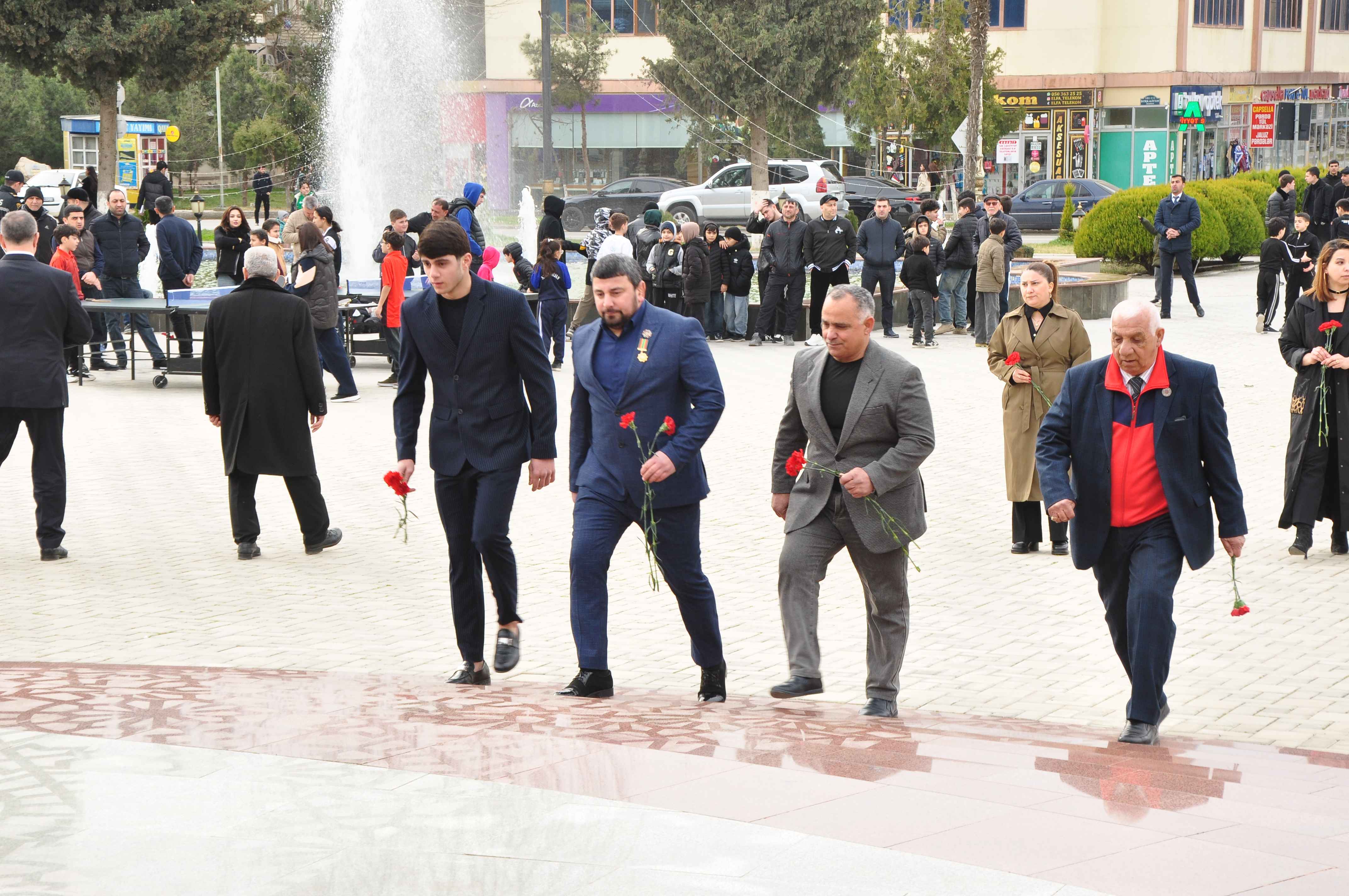 Tədbirdə əvvəlcə şəhərin mərkəzi meydanında ucalan Ulu Öndər Heydər Əliyevin abidəsi ziyarət edilib, əziz xatirəsi ehtiramla anılıb.