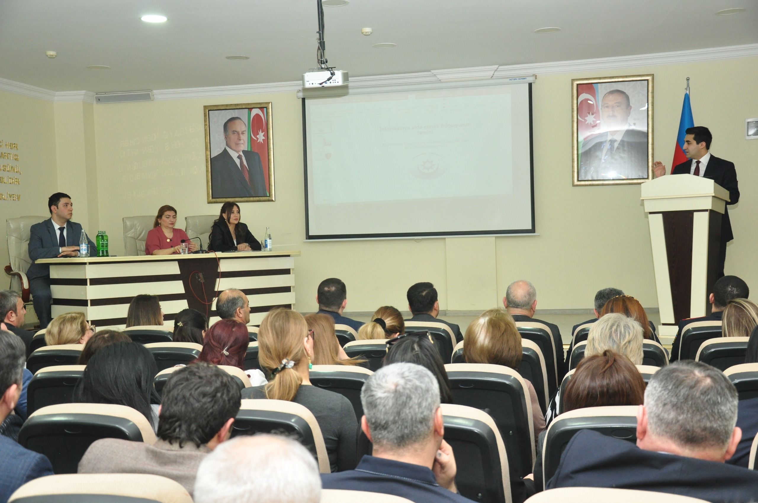 Sonra Ombudsman Aparatının İnformasiya əldə etmək hüququnun müdafiəsi şöbəsinin müdiri Lamiyə Zeynalova və Aparatın digər əməkdaşları təqdimatlarla çıxış edərək, Müvəkkilin informasiya sahiblərinin “İnformasiya əldə etmək haqqında” Azərbaycan Respublikasının Qanununun tələblərindən irəli gələn vəzifələri yerinə yetirməsinə nəzarəti həyata keçirməsinin xüsusiyyətləri barədə məlumat veriblər.